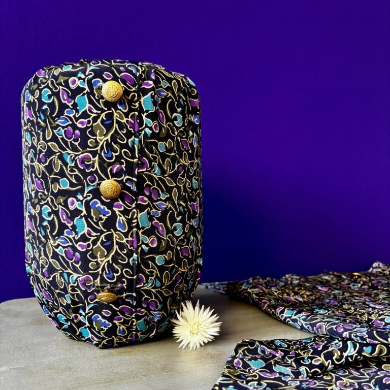 Aus Ihren Kleidungsstücken oder Stoffen – oder auf Wunsch auch aus neuen Stoffen (wie auf Bild 2) – fertige ich für Sie gern eine textile Überurne an.